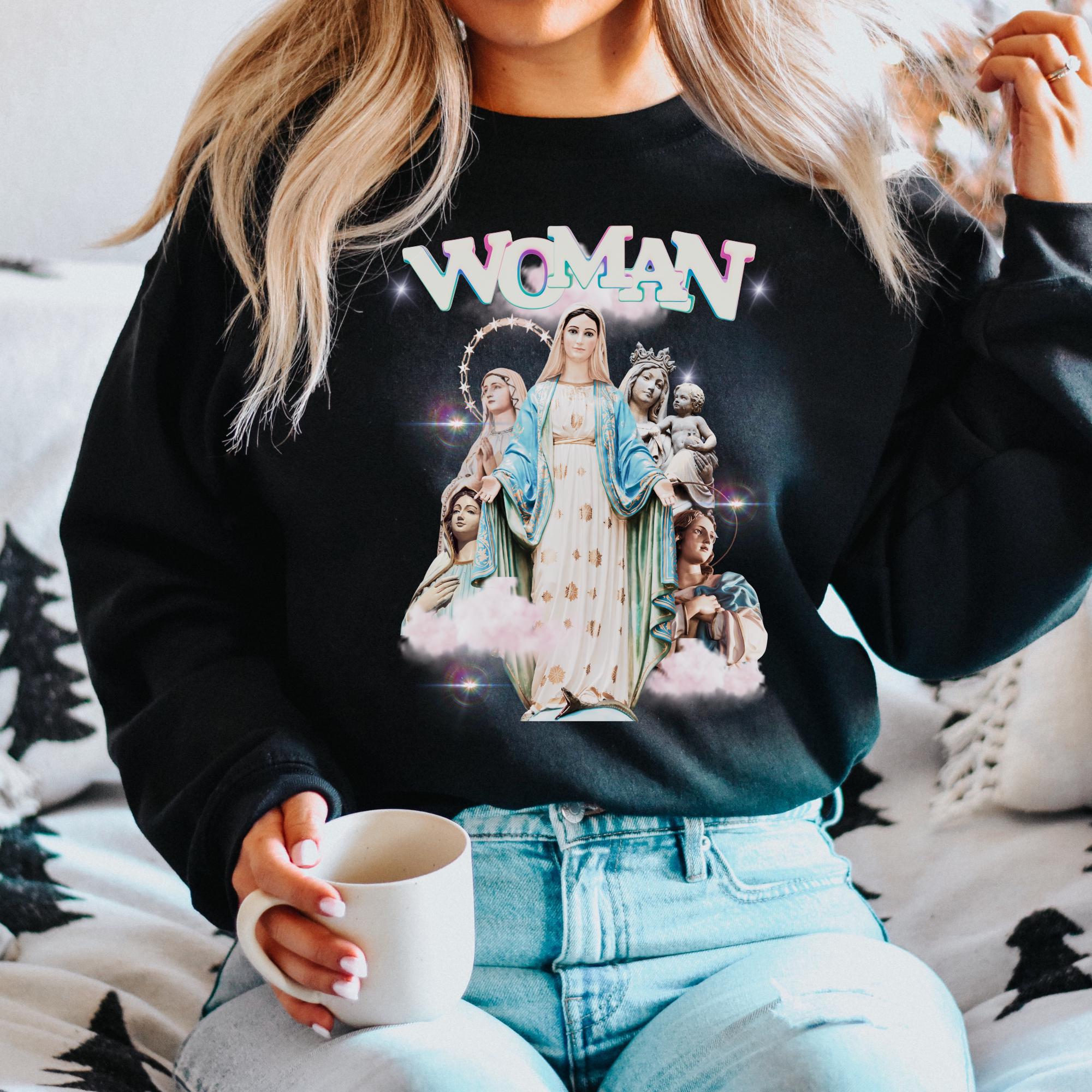 Its's design is inspired by the 90's vintage graphic bootleg rap tees, but we made it Catholic.