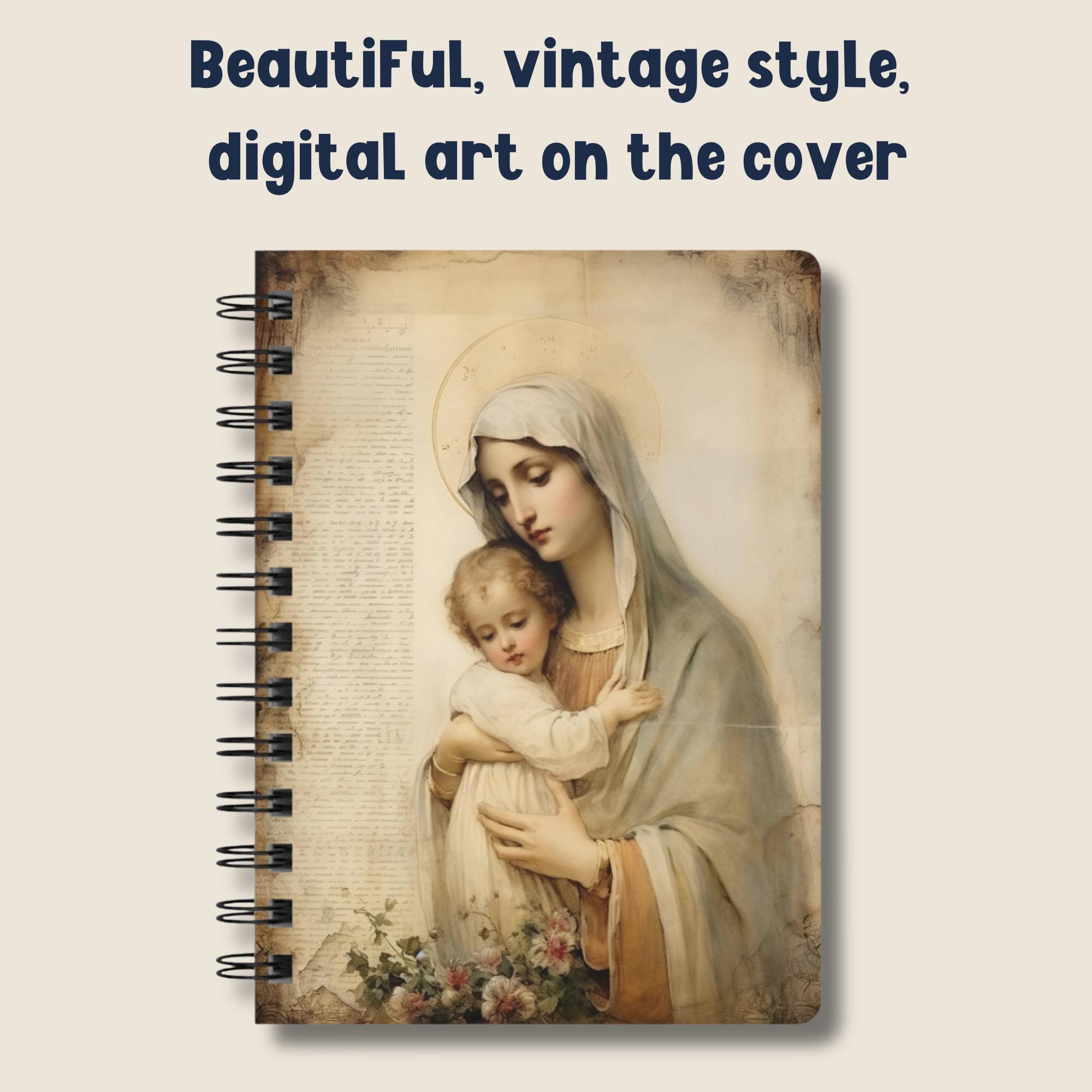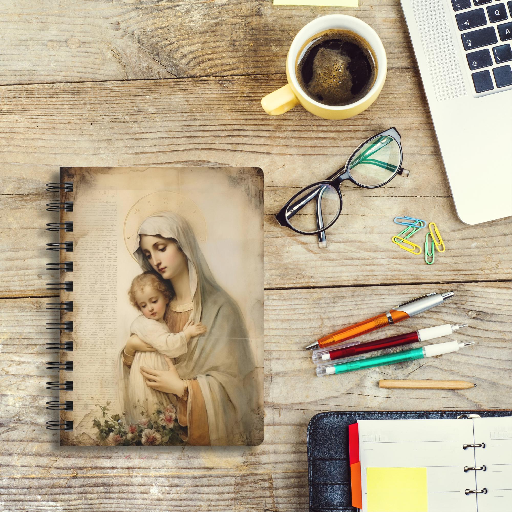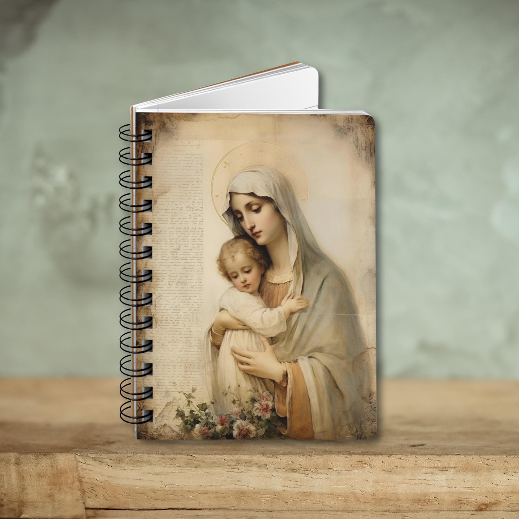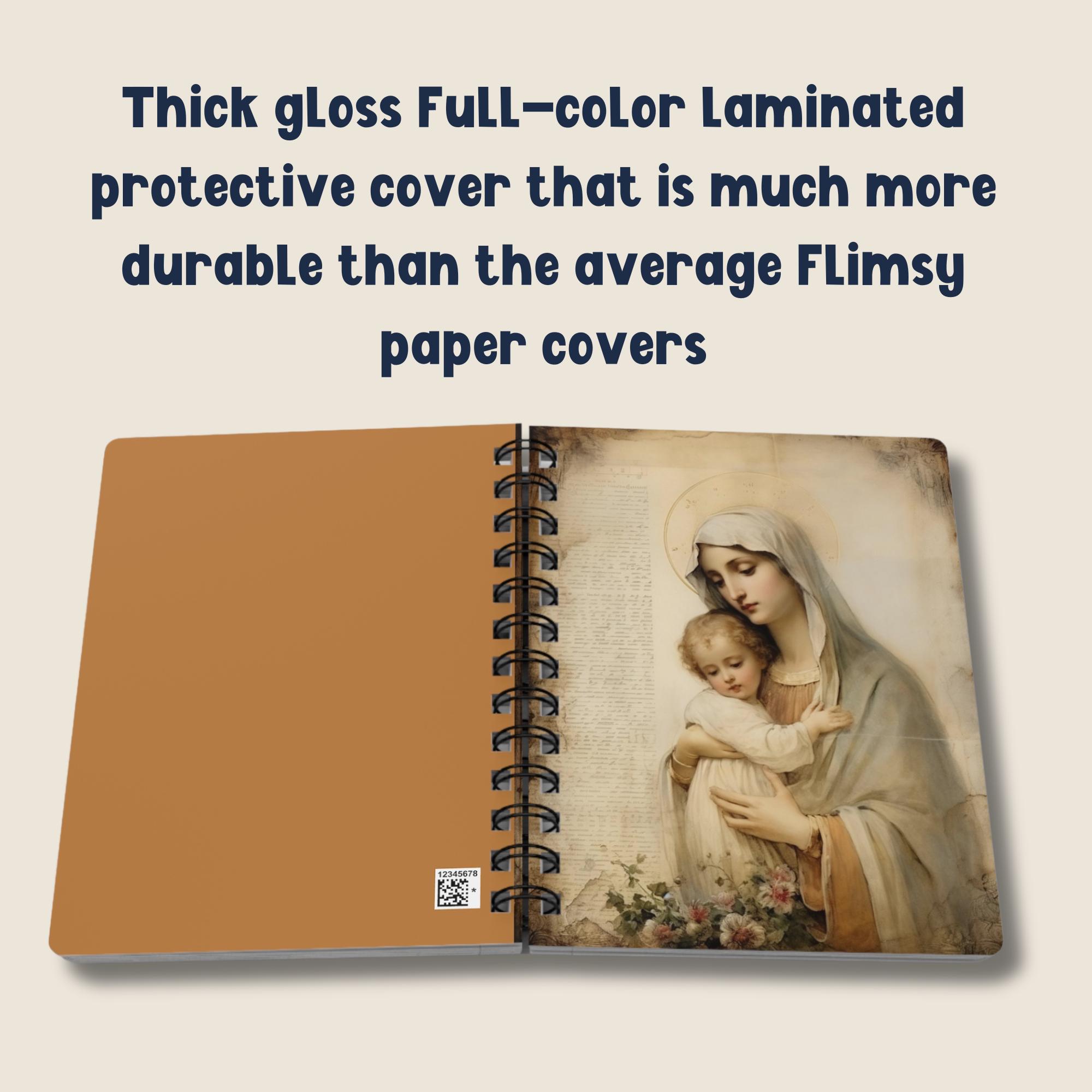 Whether you're an aspiring writer, a diligent student, or a devout Catholic, a journal can be a powerful tool to record your thoughts, ideas, and experiences. Not only does it lay flat for easy writing, but with its 118 lined pages, it offers ample space for you to express yourself. The durable printed cover featuring beautiful Catholic Art makes the owner proud to carry it everywhere. Use it for almost anything. prayer journal, bible study notes, recipes, favorite Saint quotes, your own stories or whatever you can imagine! Our Blessed Mother on the cover will inspire you to contemplate God and write your little heart out. The spiral bound will allow you a flat surface to write on.